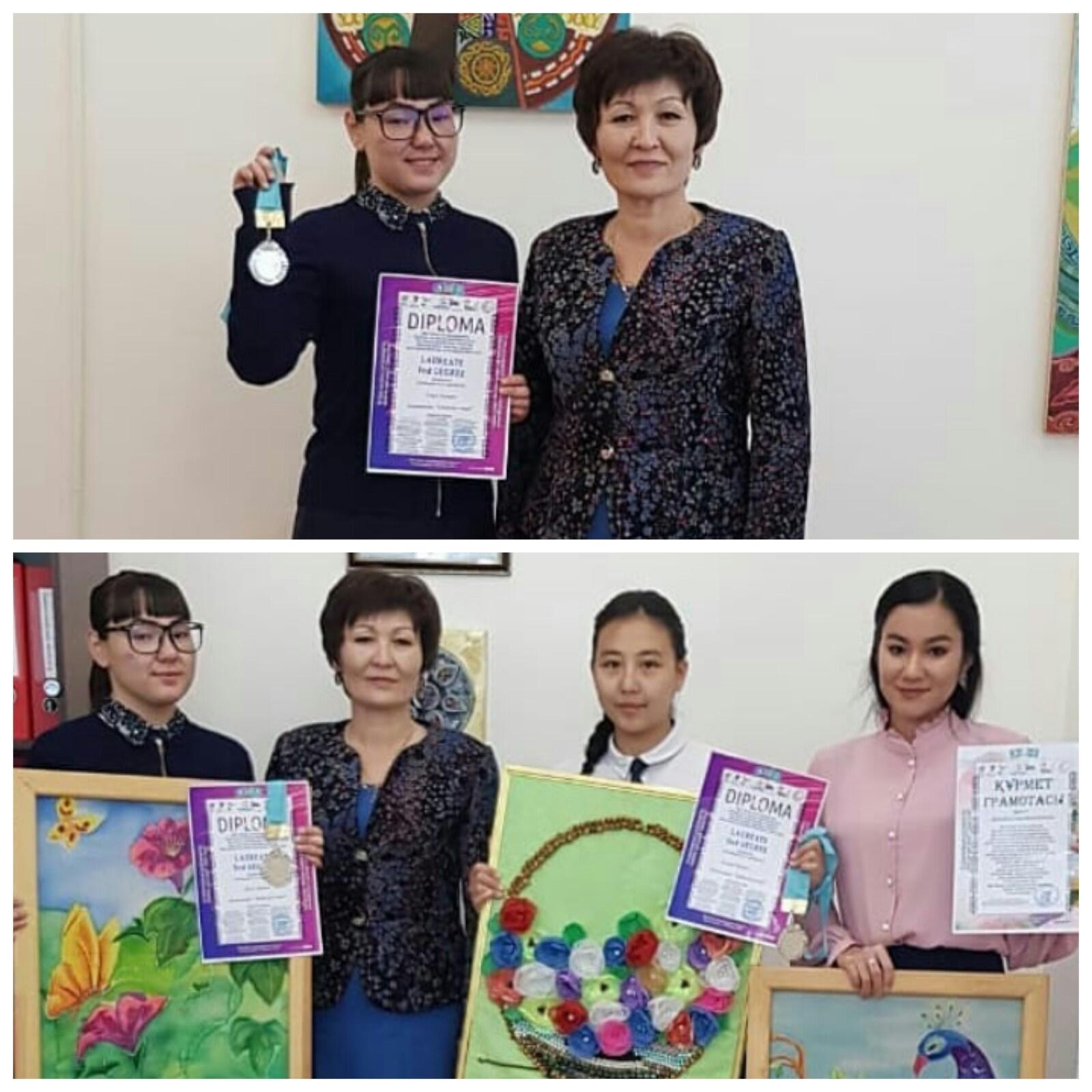 "Жеті Өнер" ІІІ Халықаралық балалар мен жастар шщығармашылық фестиваль конкурсында көрсеткен айрықша өнері, дарынды қабілеті және рухани өркендеу жолындағы еңбегі үшін Мектебіміздің өнерлі оқушылары Ануар Наркес, Акуп Аяжан 2-ші дәрежелі дипломмен марапатталды. Жетекші: Бақытбек Сания