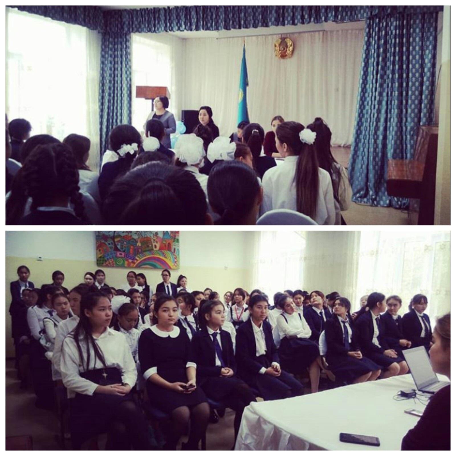 Мектебіміздің 8-10 сынып оқушыларына "Қыз - әдептілігімен әдемі" тақырыбында қыздар жиналысы өтті. Жиналыста қыз баланың тәртібі, тәрбиесі, өзін-өзі ұстауы, мектеп формасы, тазалығы, қмәдениеттілігі, имандылығы, әдептілігі мен әдемілігі жайлы айтылды.