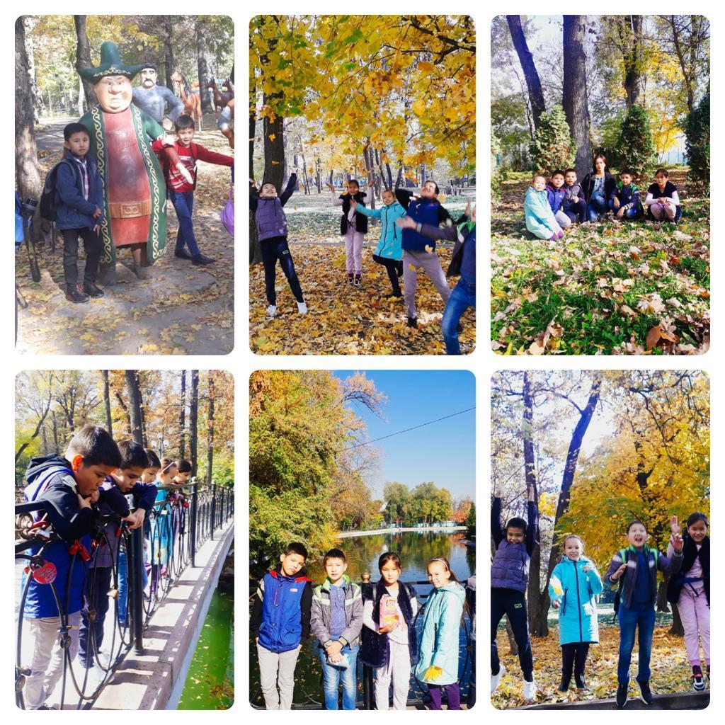 Жетісу ауданы #2 ЖББ мектептің 4 "А" сынып оқушылары Орталық демалыс саябағына экологиялық серуенге шықты. Оқушыларды күзгі табиғат құбылыстарымен таныстыра отырып, күзгі ағаштарға назарларына аудару, олардың ерекшеліктерімен таныстыру. Табиғатқа деген сүйіспеншіліктерін арттыру. Күзгі табиғаттың сұлулығы мен әсемдігін көре білуге тәрбиелеу.
