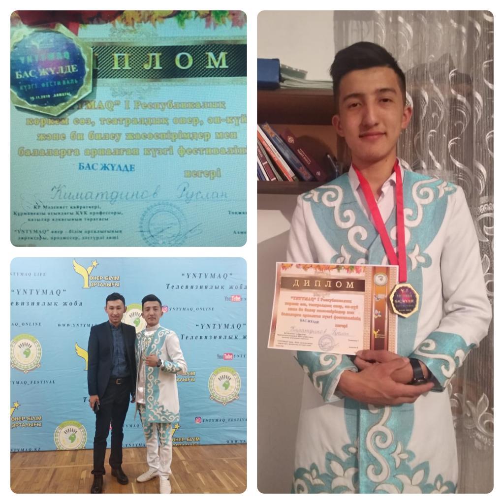 Жетісу ауданы #2 ЖББМ 10 сынып оқушысы КИМАТДИНОВ РУСЛАН "YNTYMAG" I Республикалық көркем сөз, театралдық өнер, ән күй және би билеу жасөспірімдер мен балаларға арналған күзгі фестиваліне қатысып БАС ЖҮЛДЕ иегері атанып ДИПЛОММЕН марапатталды!
