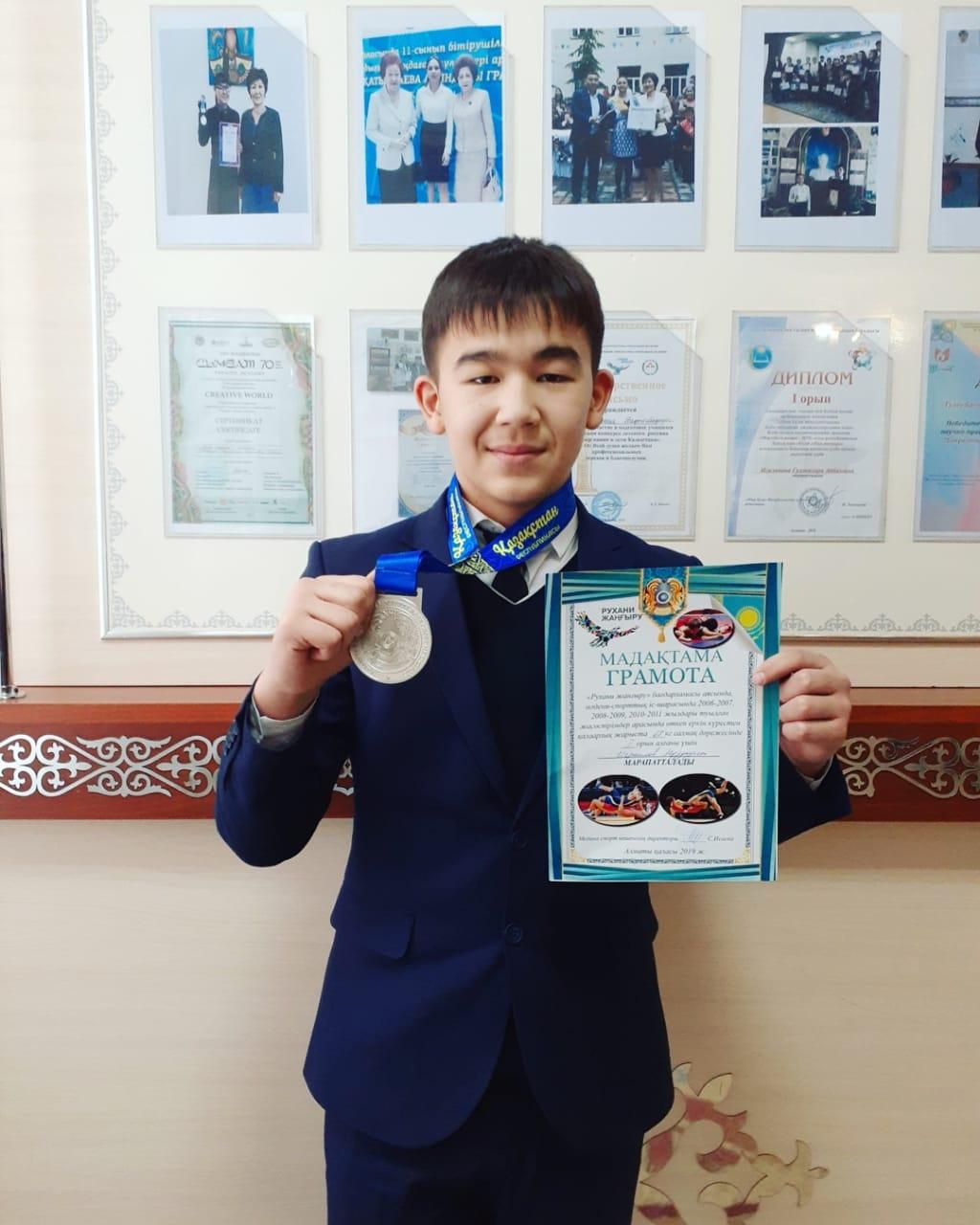 25 қараша 2019 0 1 2 3 4 5 "Рухани жаңғыру" "Рухани жаңғыру" бағдарламасы аясында, мәдени спорттық іс-шарасында жасөспірімдер арасында өткен еркін күрестен қалааралық жарыста 68 кг салмақ дәрежесінде ІІ орын алғаны үшін 7 "Б" сынып оқушысы ИСРАИЛОВ НҰРДӘУЛЕТ Марапатталады!!!