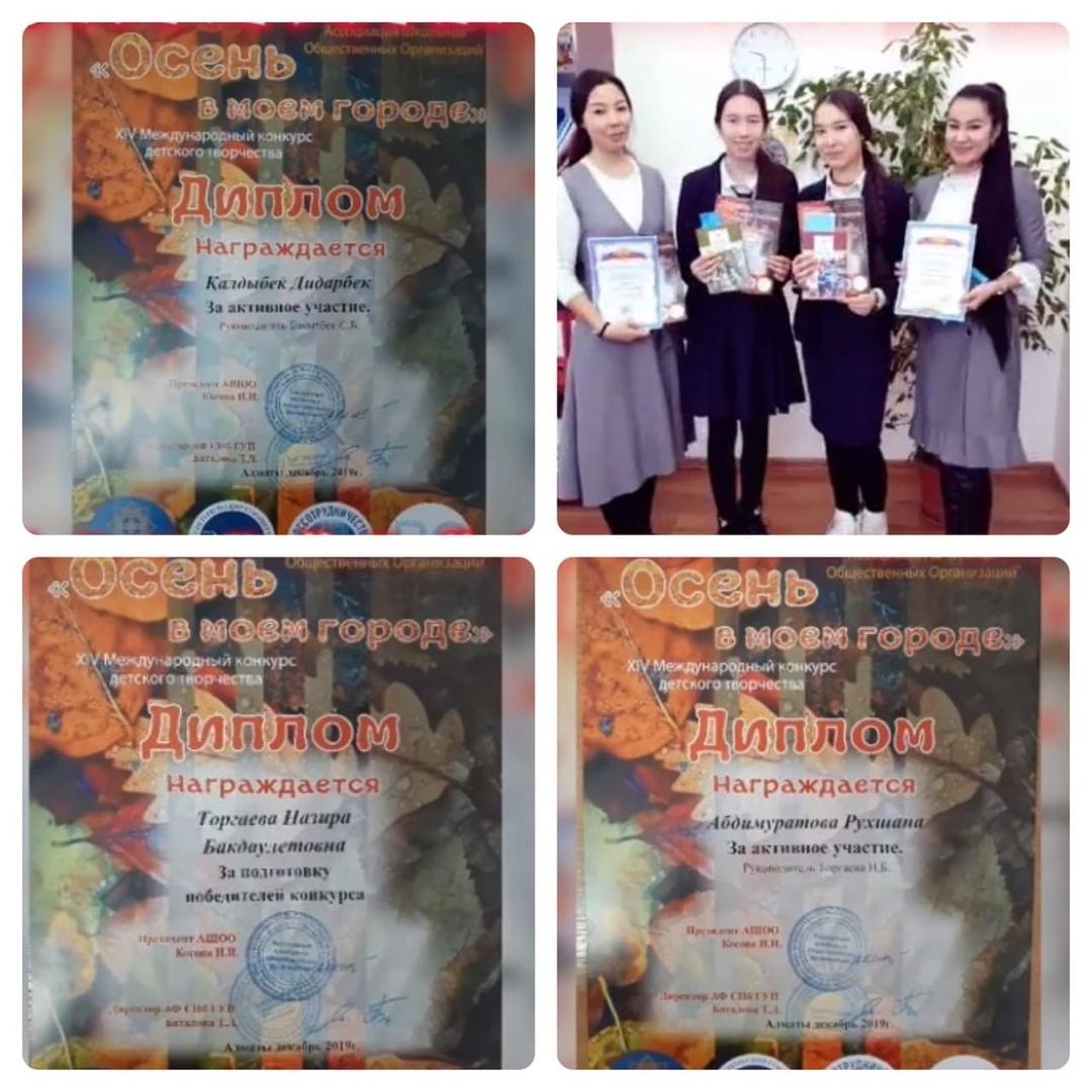 Жетекшілері Торгаева Назира Бакдаулетовна, Бақытбек Сания Бақытбекқызы , Идирисов Руслан Еркінұлы Алғыс хатпен және Дипломмен марапатталынды!