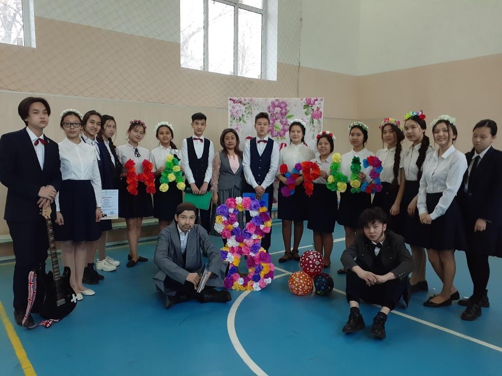 Жетісу ауданы №2 Жбб мектептің 9 "А" сыныбы "Әлемнің жарыҒын сыйладың сен маған!" атты мерекелік лездеме өткізді. Мақсаты: Нәзік жанды аруларымыздың қоғамдағы рөлінінің айтарлықтай ерекше екендігін дәлелдеп, оларға қуаныш сыйлау. Сынып жетекшісі: Умбетова Ж.Қ