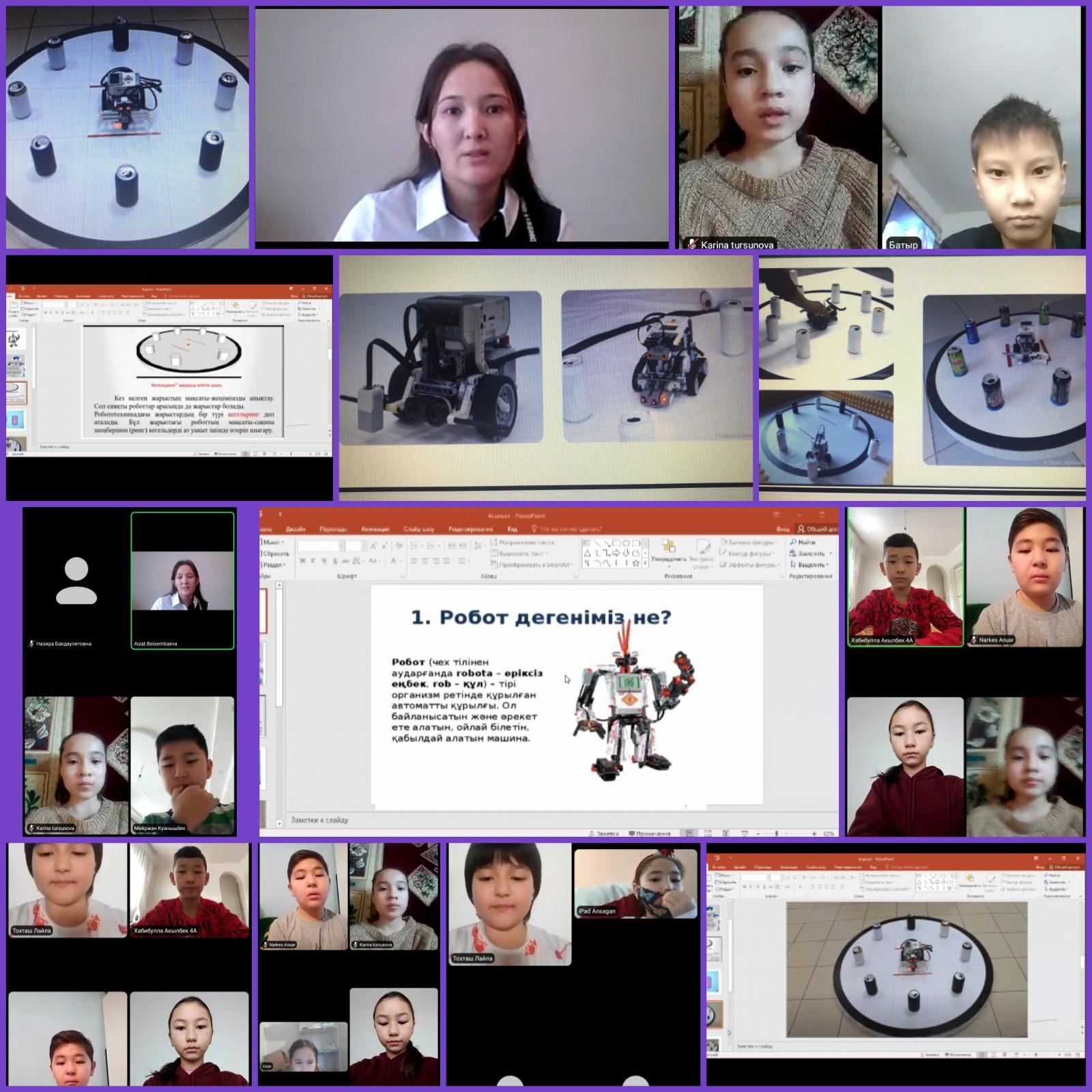 Жетісу аудандық Білім бөлімінің жоспарына сәйкес "Қазақстан балалары - қысқы ғажайып" қысқы каникул кезінде балалардың демалысын, бос уақытын және жұмыспен қамтылуын ұйымдастыру мақсатында ғылыми-техникалық бағыты бойынша "Пайдалы ойындар" робототехникаға байланысты информатика пәні мұғалімі Жылғамбаева Айзат 4 сынып оқушыларымен онлайн тренинг өткізді.