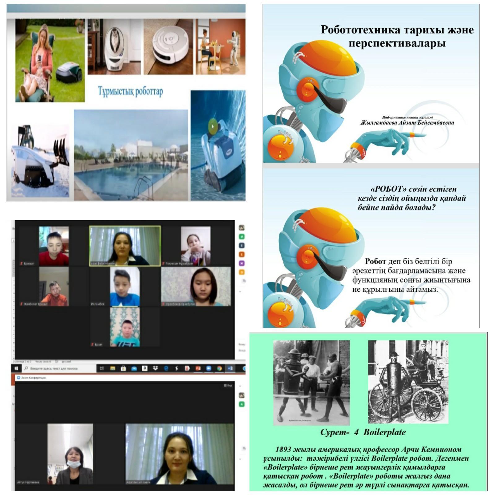 Ұлы ғұлама әл-Фарабидің 1150 жылдығына арналған "Білімді болу деген жаңалық ашуға қабілетті болу" атты жаратылыстану бағытындағы пәндер бірлестігінің онкүндіктің аясында информатика пәні мұғалімі Жылғамбаева А.Б 5 "Б" сынып оқушыларына "Робототехника тарихы және перспективалары" тақырыбында ашық сабақ өткізді.