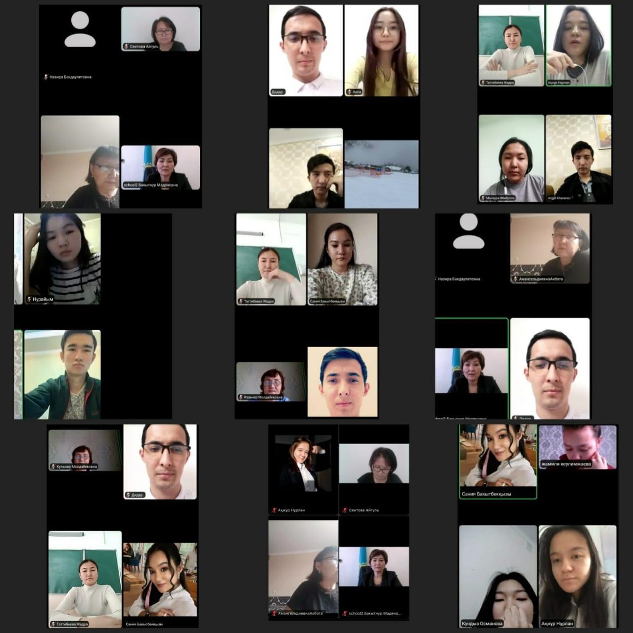 Жетісу ауданы, №2 ЖББМ директоры Б.М.Отепбекова мектеп бітіруші түлектер мен пән мұғалімдеріне онлайн жиналыс өткізді. Жиналыста мемлекеттік емтихан және ҰБТ-ға дайындық жұмыстары, оқушыларлың білім деңгейлері талқыланды. Оқушылардың ұсыныстары қабылданып, пән мұғалімдеріне тапсырмалар берілді.