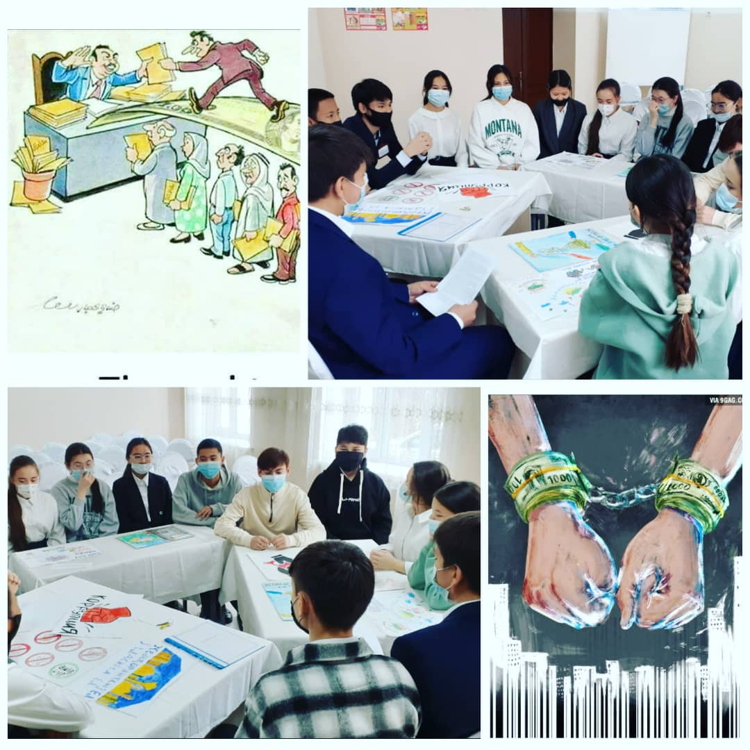 Ұйым оқушылары жемқорлық жайлы өз ойларын, оның қай жерде көп кездесетінін талқылады. Сыбайлас жемқорлық елдің эканомикасының дамуына кедергі келтіретінін ортаға салып, болашақта жемқорлықпен күресу жолдарын айтты.