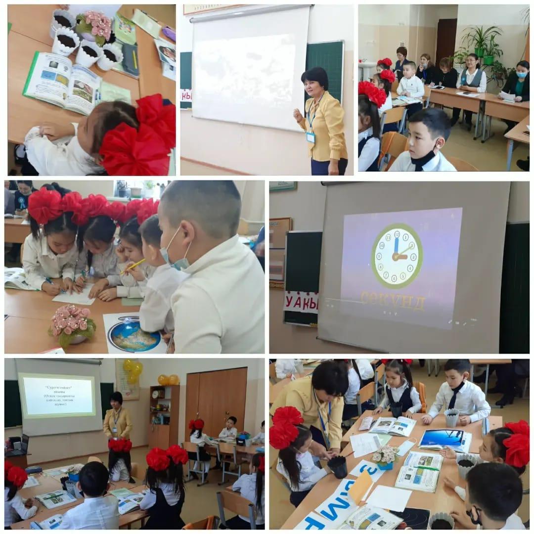 "Өнер, білім бәрі де оқуменен табылған " атты бастауыш бірлестігінің онкүндігі аясында бастауыш сынып мұғалімі Тойкулова Б .А 1 "Б" сынып оқушыларына жаратылыстану пәнінен ашық сабақ өткізді .