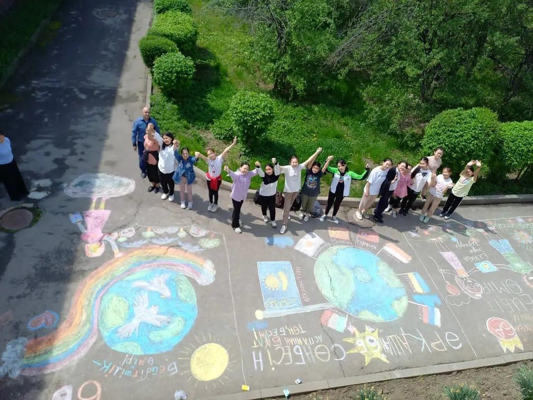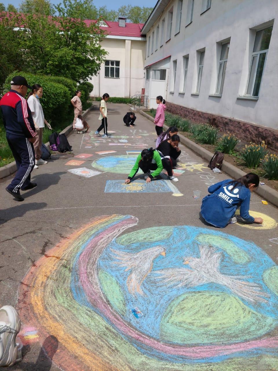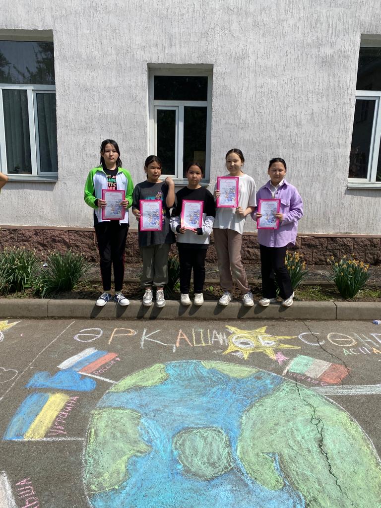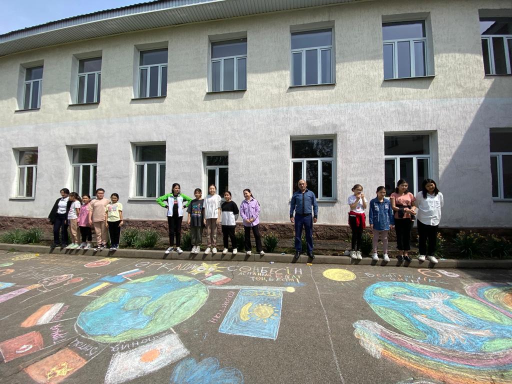 6 сынып оқушылары арасында "Әрқашан күн сөнбесін!" асфальтқа сурет салу жарысын өткізді.