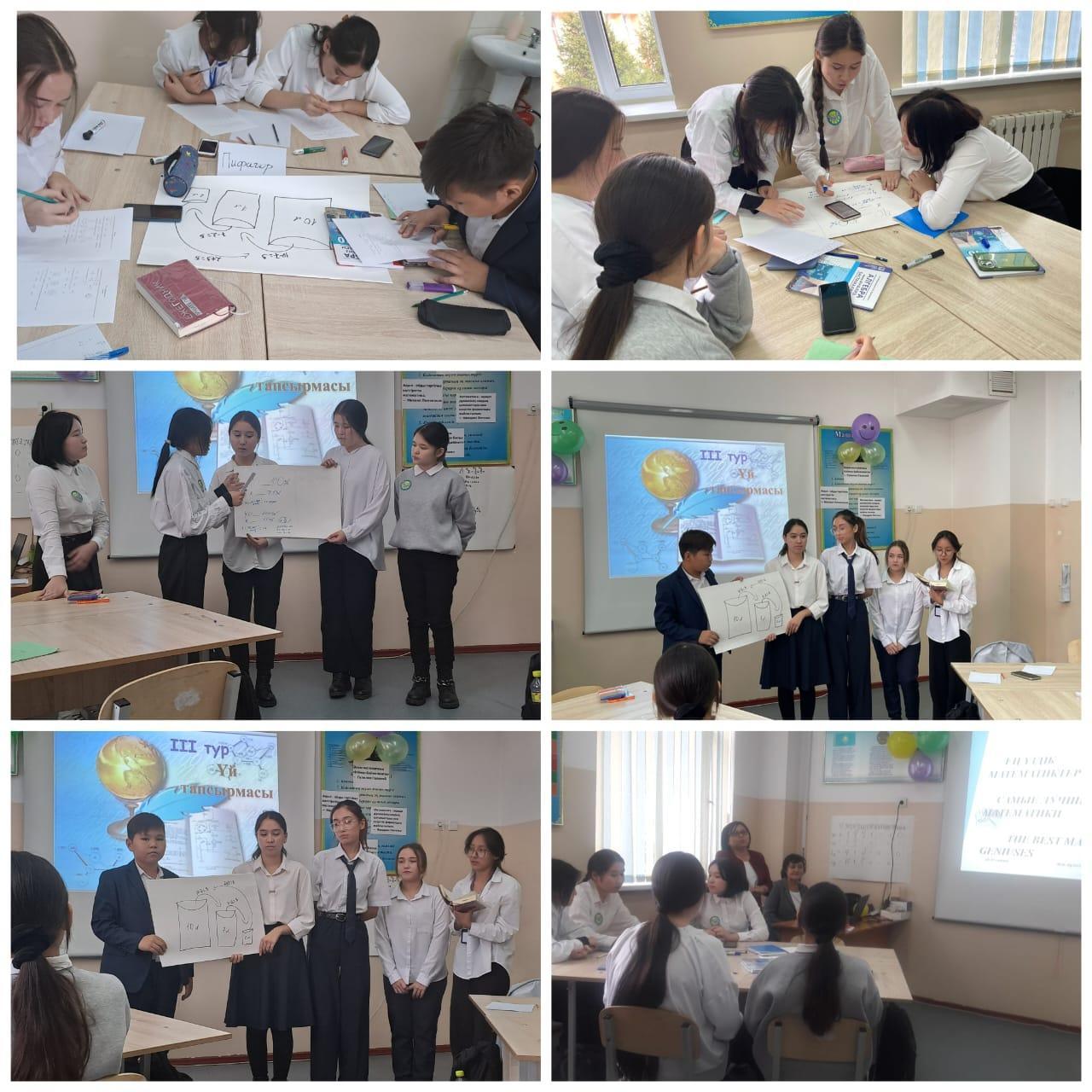 «Үштілділік – жаһандану заманының талабы» атты 21.11-29.11.2022 жыл аралығындағы жаратылыстану бағытындағы пәндер бірлестігінің апталығы аясында математика пәні мұғалімдері Абдуллаева К.М., Журынова Ф.Т. 10-11 сынып оқушылар арасында " Ең үздік математиктер" тақырыбында интеллектуалды ойын ұйымдастырды. Мақсаты: Үштілділік – жаһандану заманының талабына сай, оқытудың заманауи тәсілдерін қолдана отырып, термин сөздерді дұрыс пайдалану, функционалдық сауаттылығын, цифрлық құзырлылығын дамыту. Оқушылардың математикалық сауаттылығын нығайту арқылы құзіреттілік деңгейлерін көтеру. Танымдық-шығармашылық қабілеттерін арттыру.