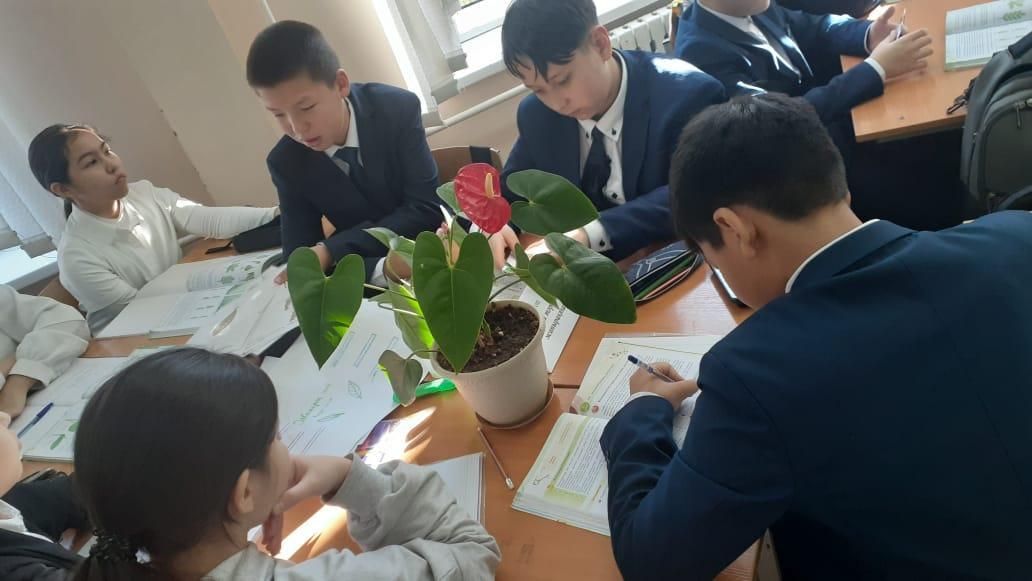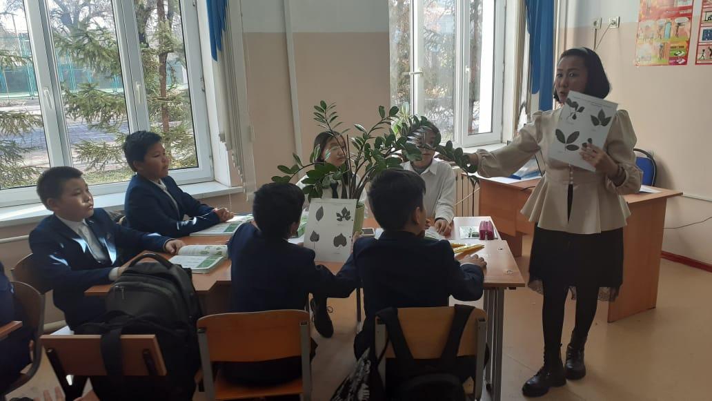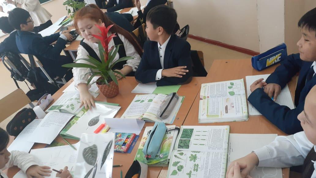 7 "Б" сынып оқушыларына "Жапырақтың құрылысы мен қызметі" тақырыбында ашық сабақ өткізді.