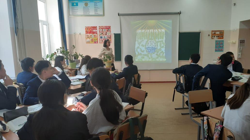«Үштілділік – жаһандану заманының талабы» атты 21.11-29.11.2022 жыл аралығындағы жаратылыстану бағытындағы пәндер бірлестігінің апталығы аясында биология пәні мұғалімі Мендыбаева Салтанат Ержановна 7 "Б" сынып оқушыларына "Жапырақтың құрылысы мен қызметі" тақырыбында ашық сабақ өткізді.