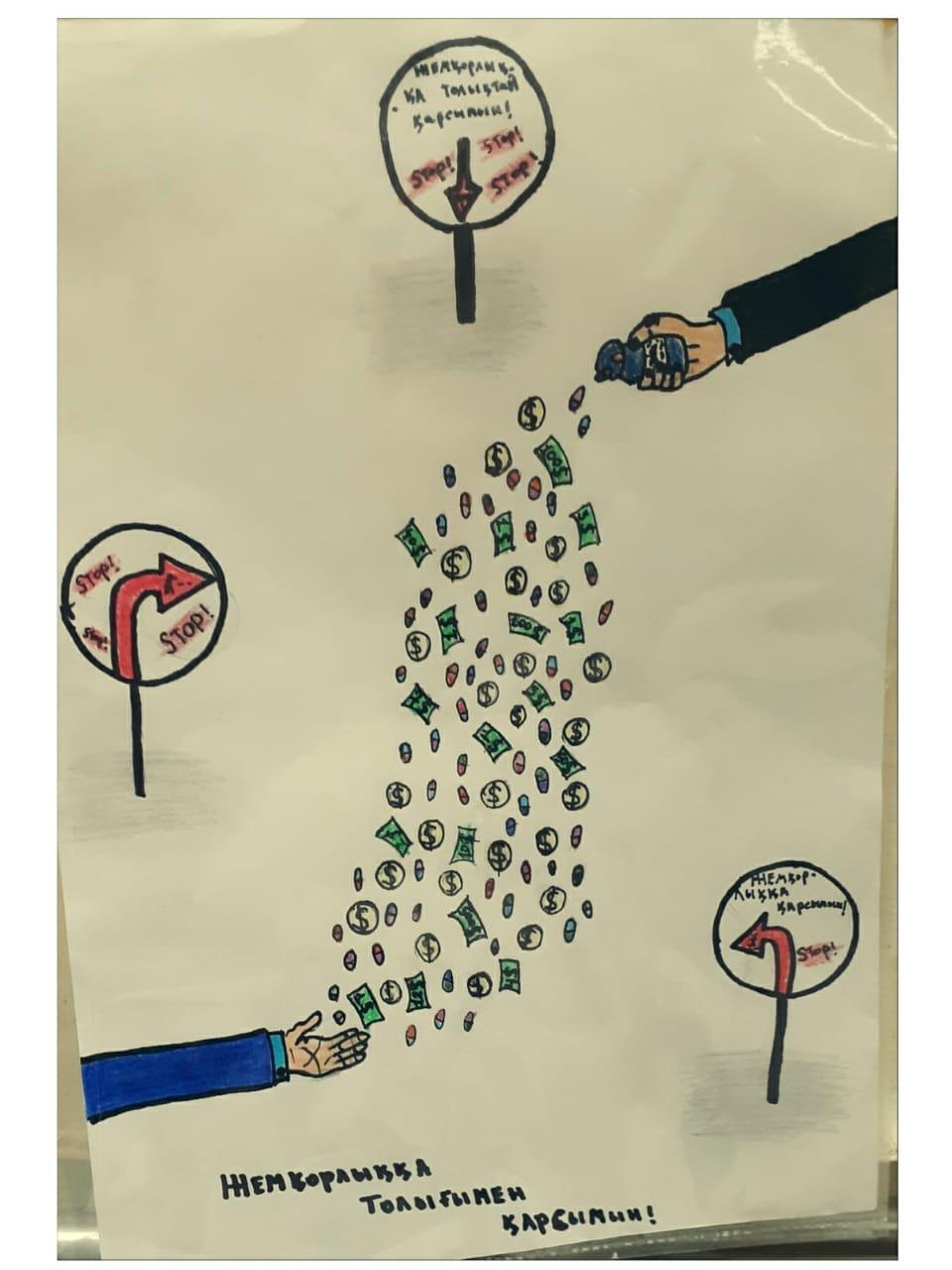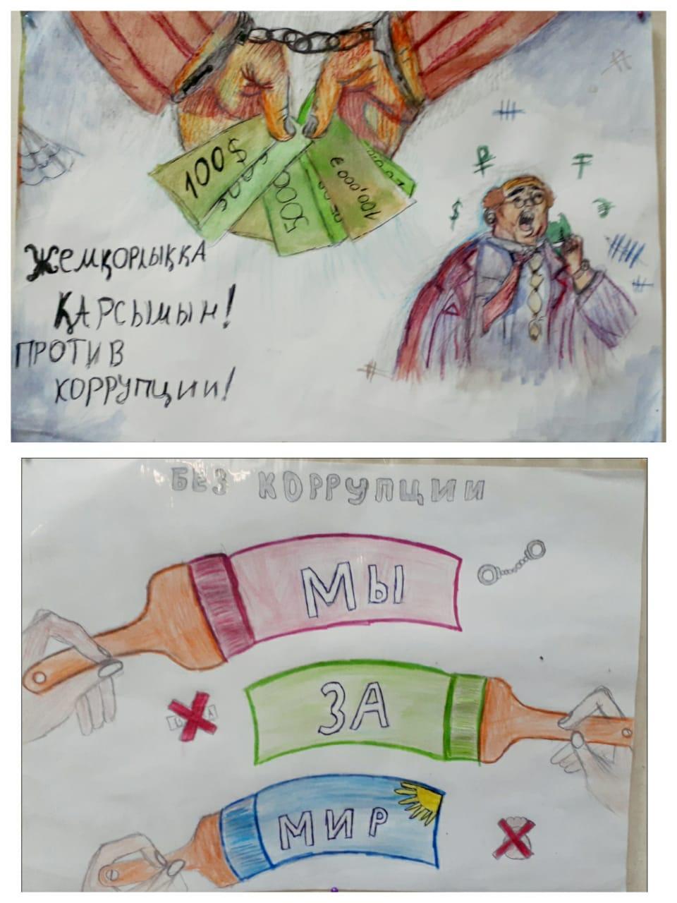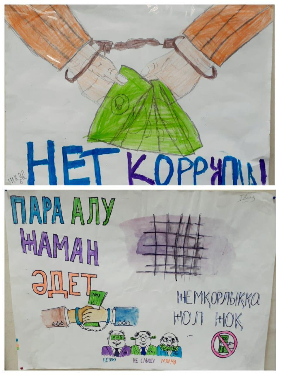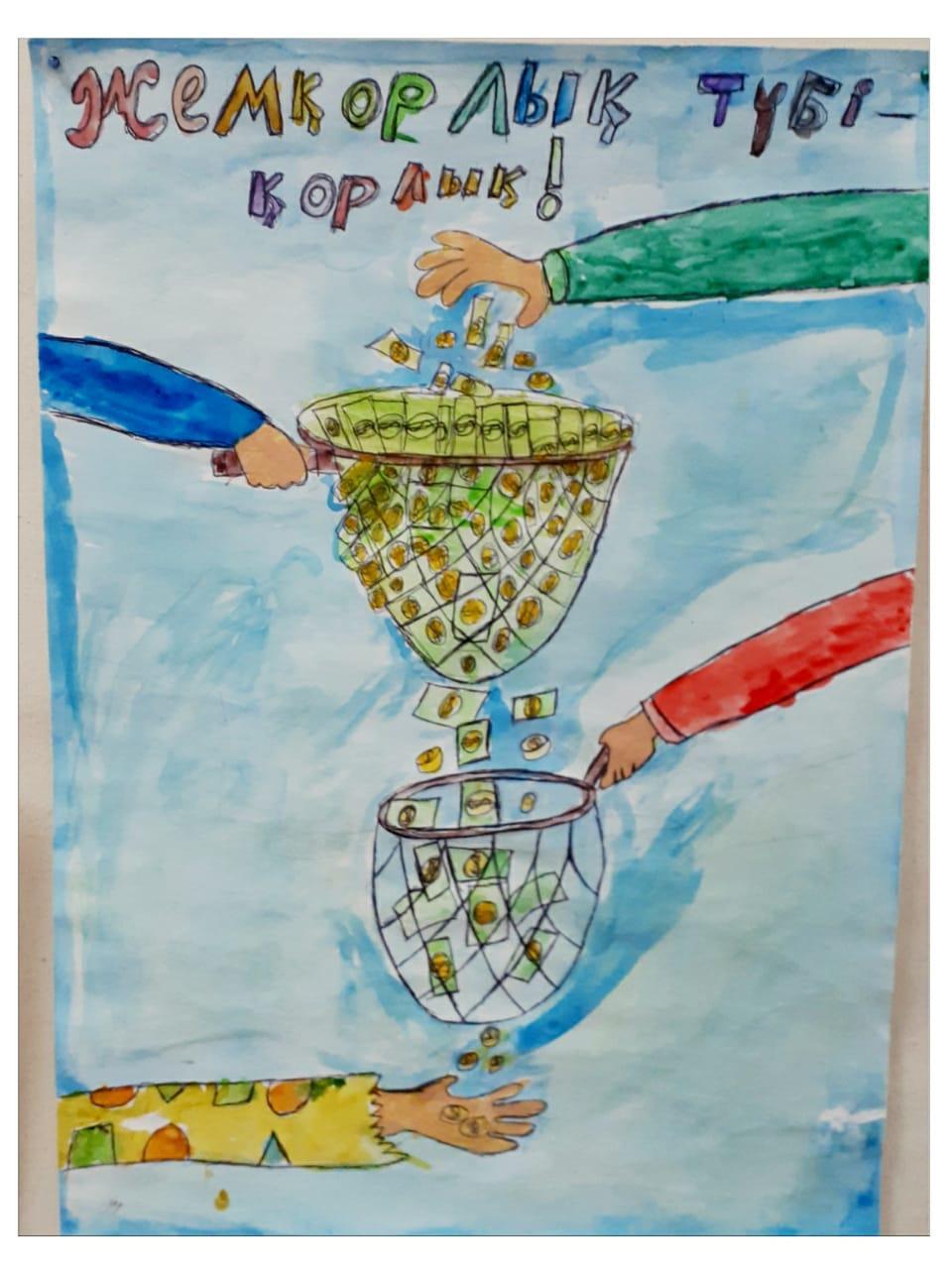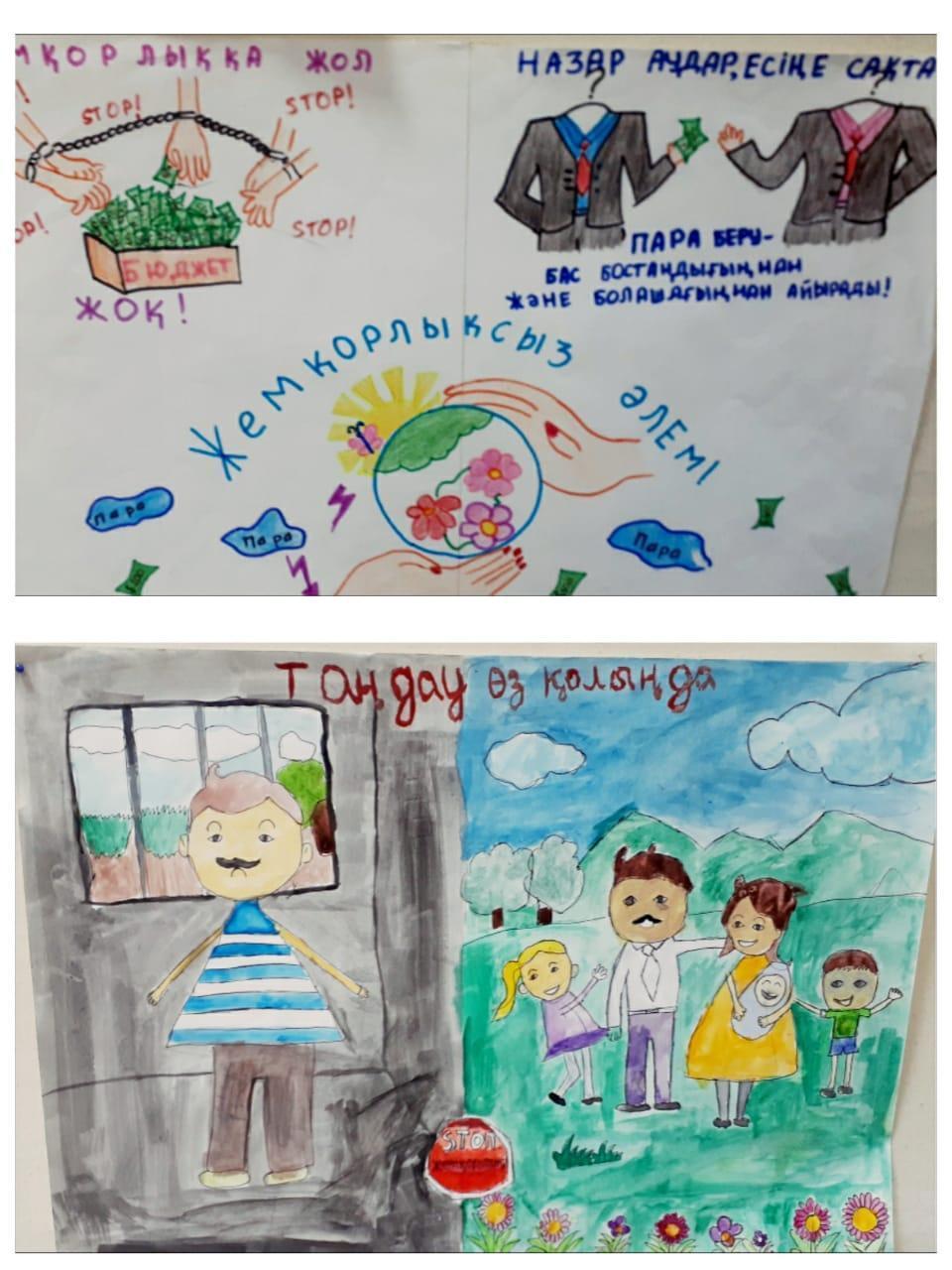 “Жемқорлықсыз әлем” тақырыбында сурет салдырып, көрме ұйымдастырды.