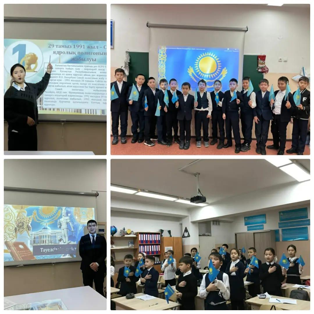 "Тәуелсіздік - тірегім, Қазақстан - жүрегім" тақырыбында тәрбие сағаттары өткізілді.