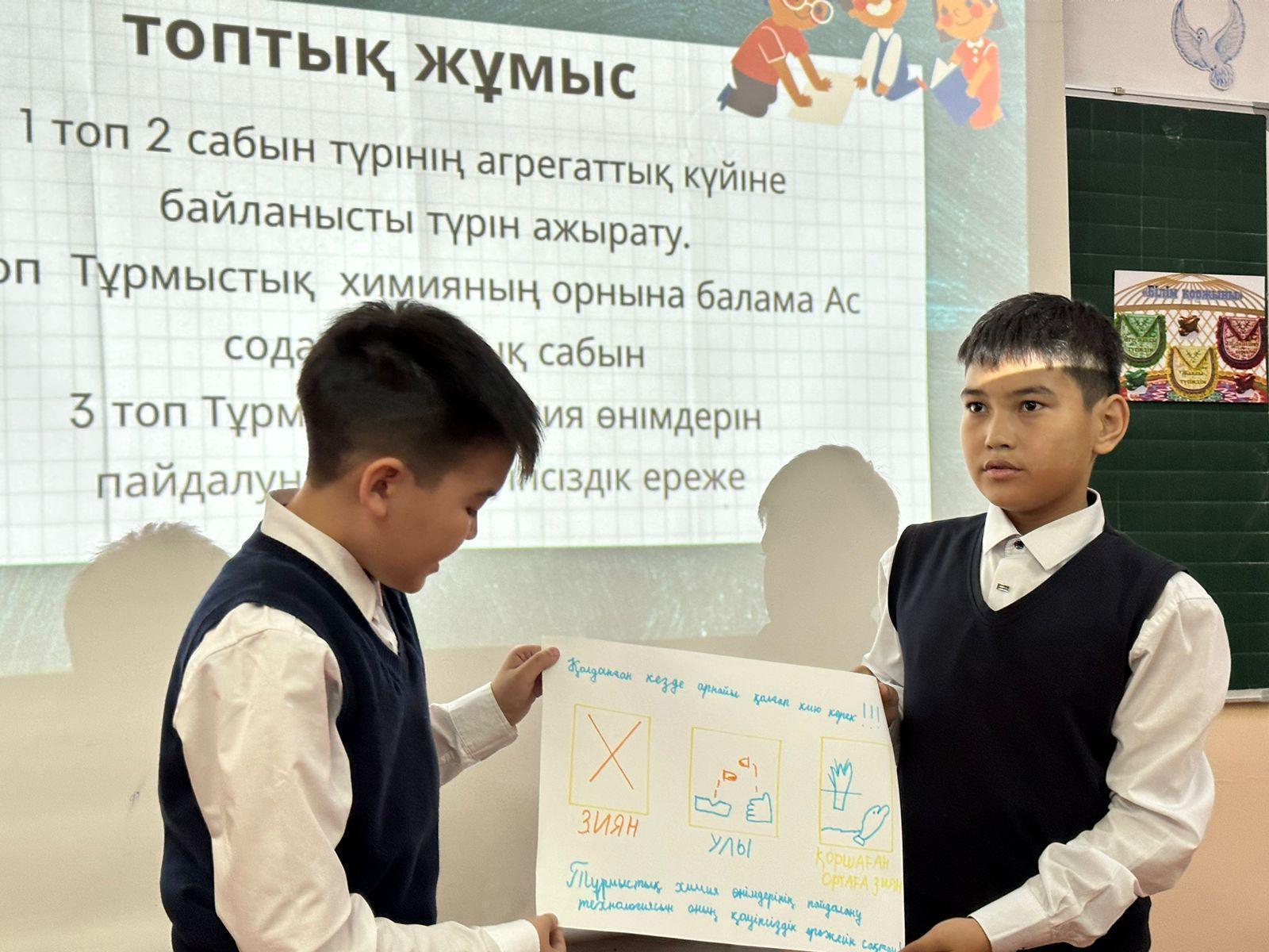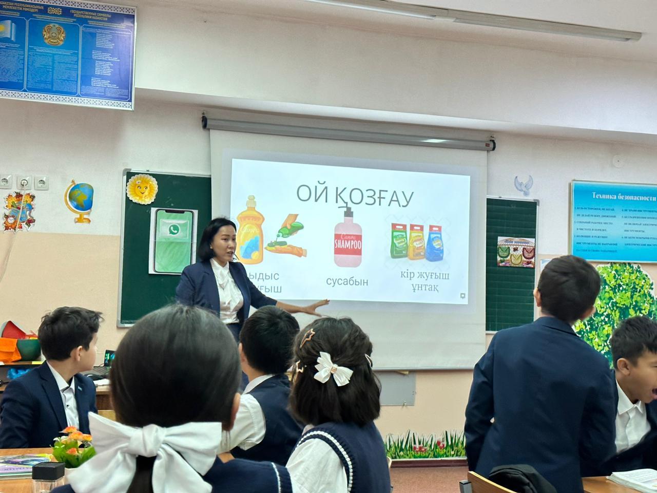 Жаратылыстану пәні мұғалімі Мендібаева С.Е. 6 "А" сыныбымен "Тұрмыстағы химия. тұрмыстағы химияны қолданудағы қауіпсіздік ережелері" тақырыбында ашық сабақ көрсетті.