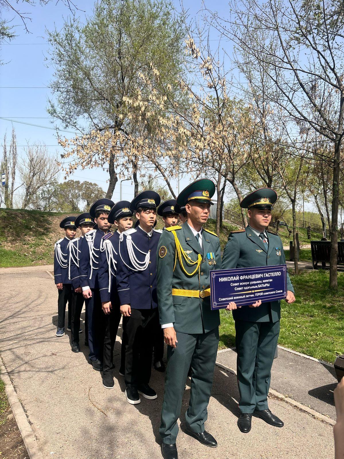 Жетісу ауданы #2 ЖББ мектебі Жетісу аудандық әкімшілігінің тапсырмасына орай Сүйінбай атындағы #143 МЛ/н бірігіп ҰОС 80 жылдығына байланысты Кеңес Одағының батыры, ұшқыш Н.Гастеллоның атына берілген көшеде арнайы флешмоб өткізіліп, көшеге Кеңес одағының аты-жөні жазылған жазба ілінді.