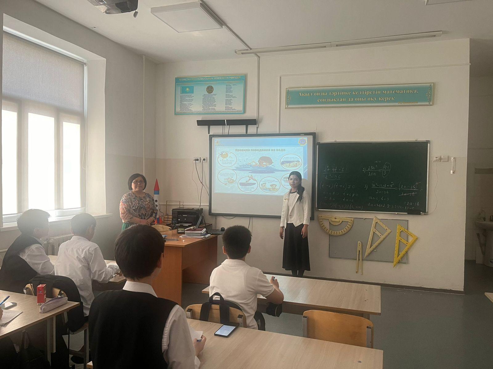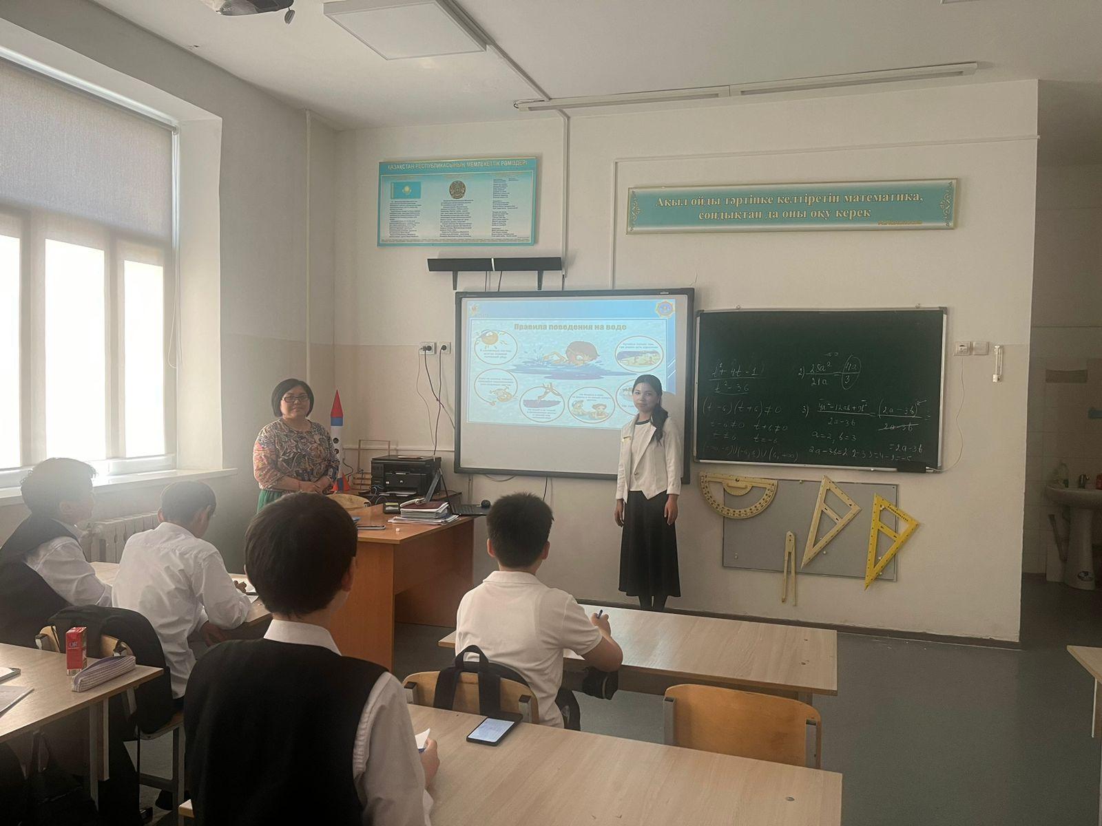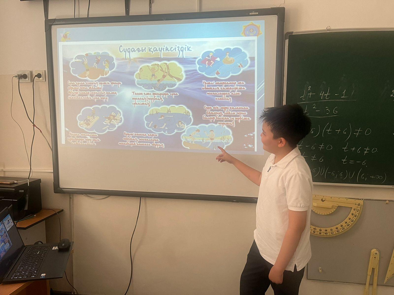 Оқушыларды “Судағы қауіпсіздік” ережелерімен таныстыру мақсатында презентация көрсетілді.