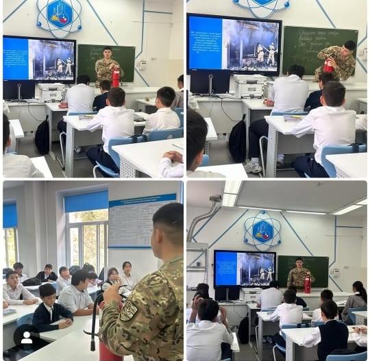 АӘ және ТД пәні мұғалімі Базарбек А.Е. мектеп оқушыларына "Сақ болайық" тақырыбында жолда жүру ережелері мен өрт қауіпсіздігін сақтау туралы түсіндіру жұмысын жүргізді. Мақсаты: Оқушыларға жолда жүру ережелері мен өрт қауіпсіздігі туралы білім беру, оларды қауіпсіздік талаптарын сақтауға үйрету, төтенше жағдайларда дұрыс әрекет етуге және өз өмірі мен айналасындағылардың қауіпсіздігіне жауапкершілікпен қарауға тәрбиелеу. @jetisu_audandyk_bilim_bolimi @jetisy_aydany