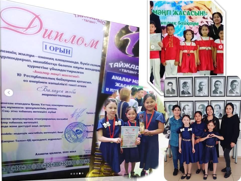 12 наурыз 2020 0 1 2 3 4 5 ІV Республикалық "Аналар мәңгі жасасын!" байқауы Жетісу ауданы №2 ЖББ мектептің "БАЛАУСА" және "ГҮЛДЕР" тобы ІV Республикалық "Аналар мәңгі жасасын!" байқауына қатысып ДИПЛОМмен марапатталынып, өз өнерімен көпшілікті тәнті етті.
