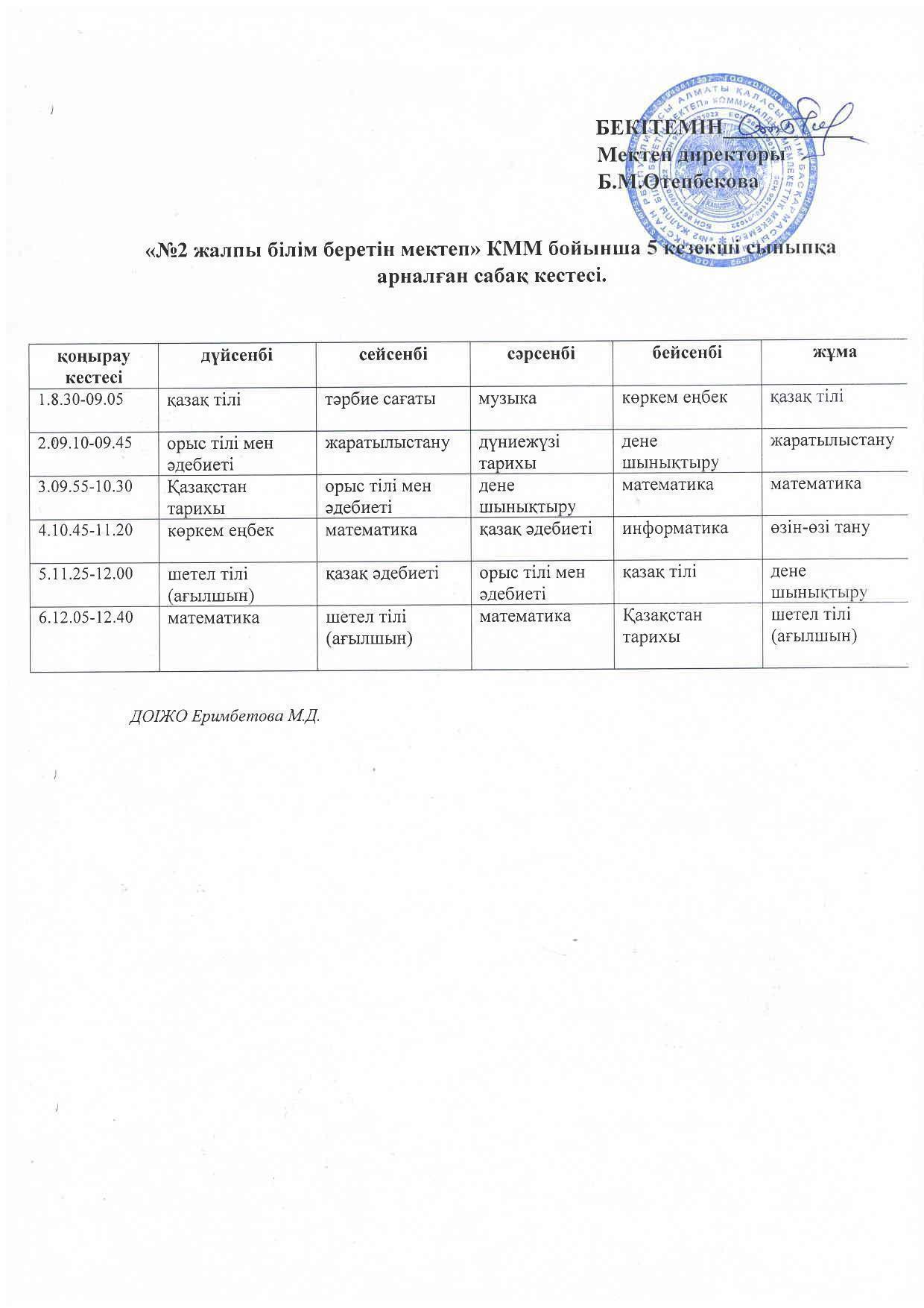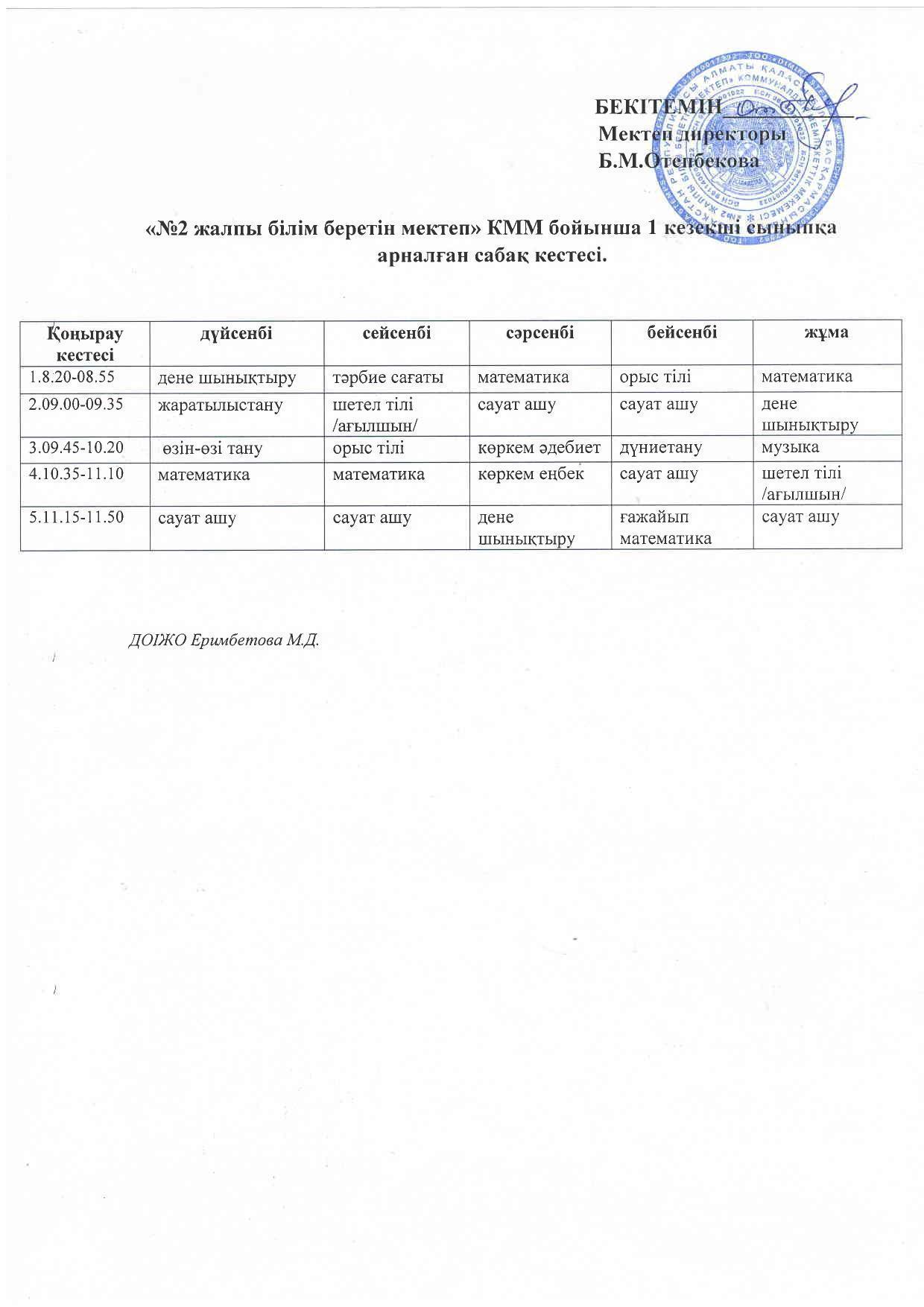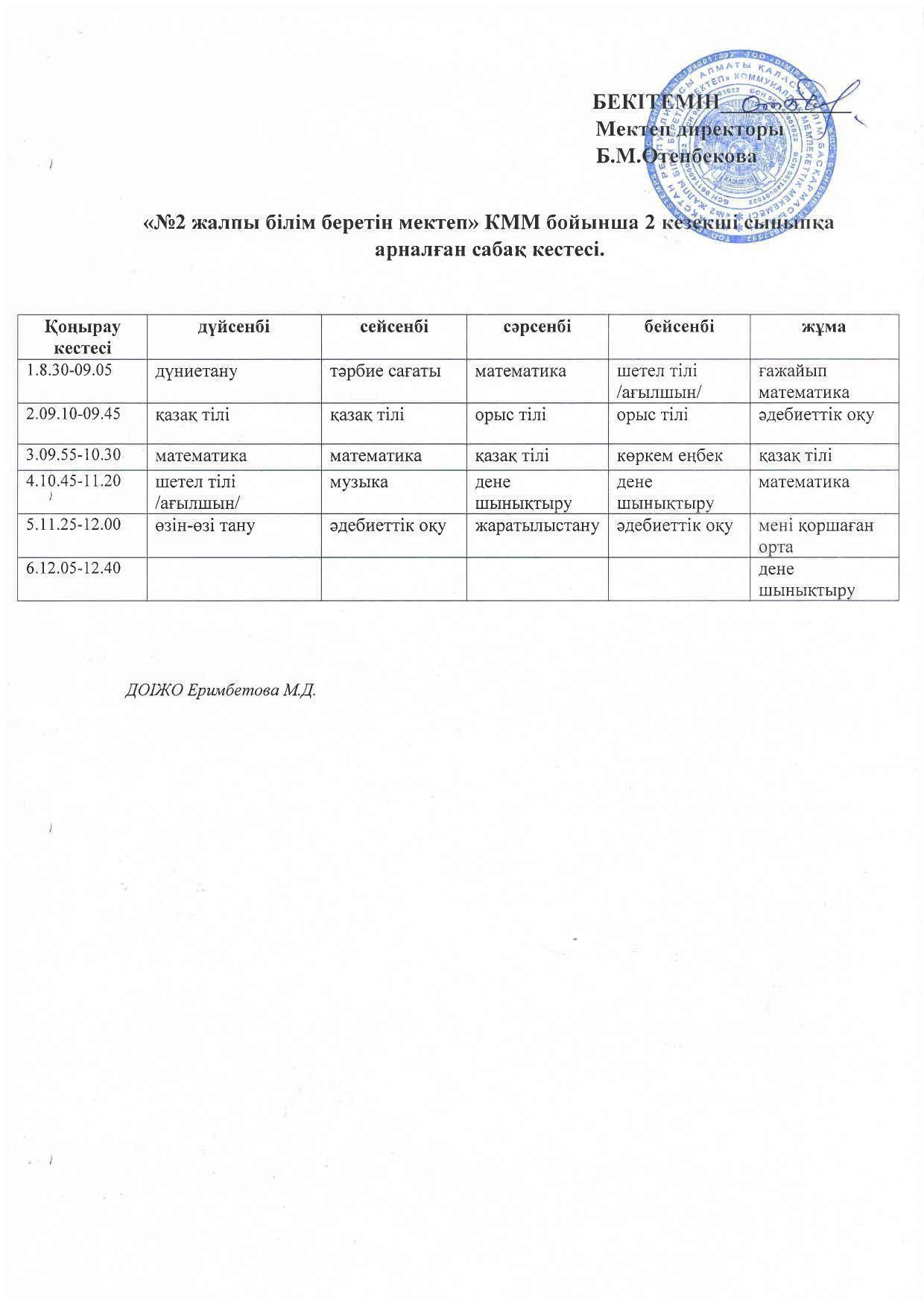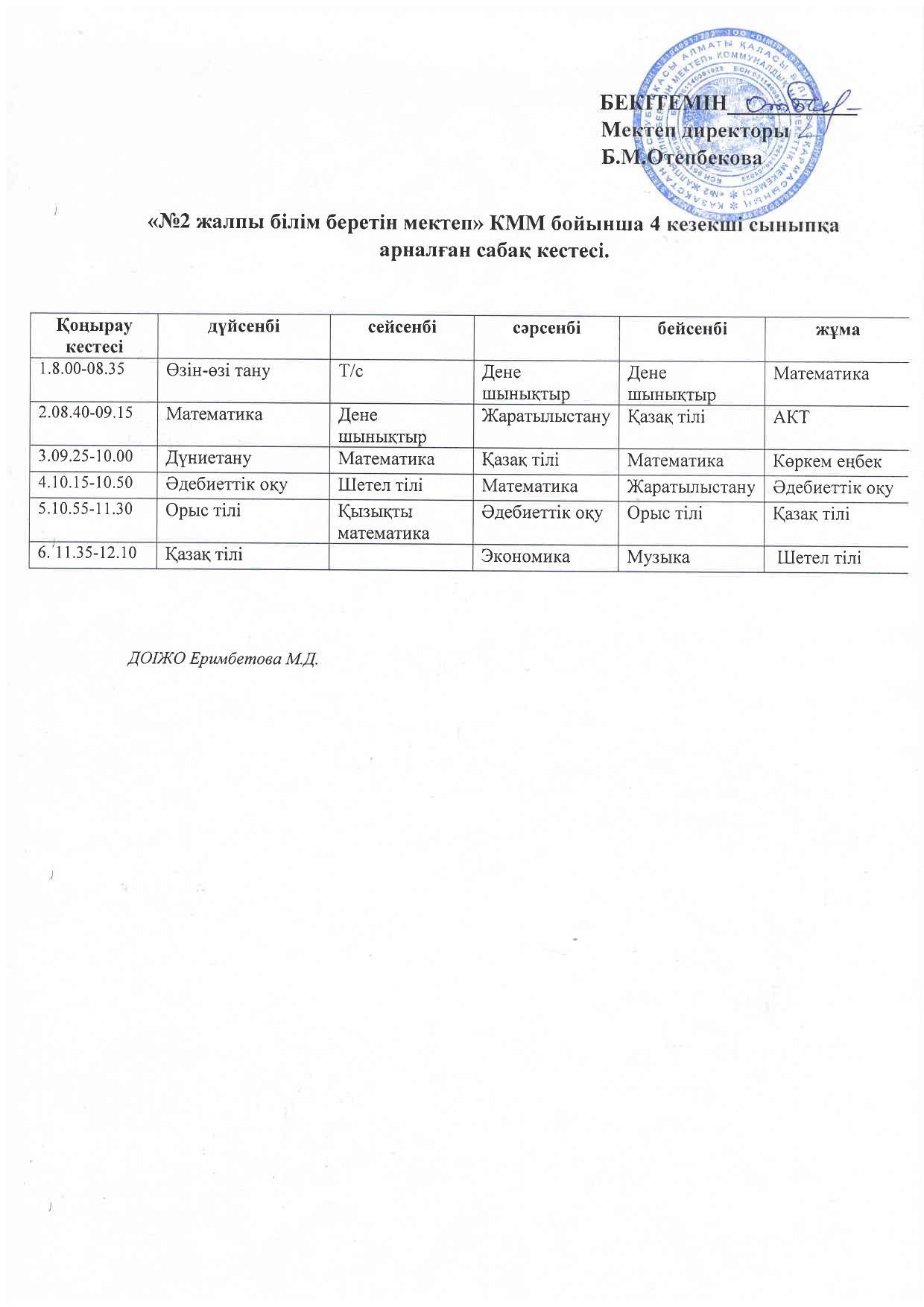 ІІІ тоқсан бойынша 9,11 сыныптардың сабақ кестесі