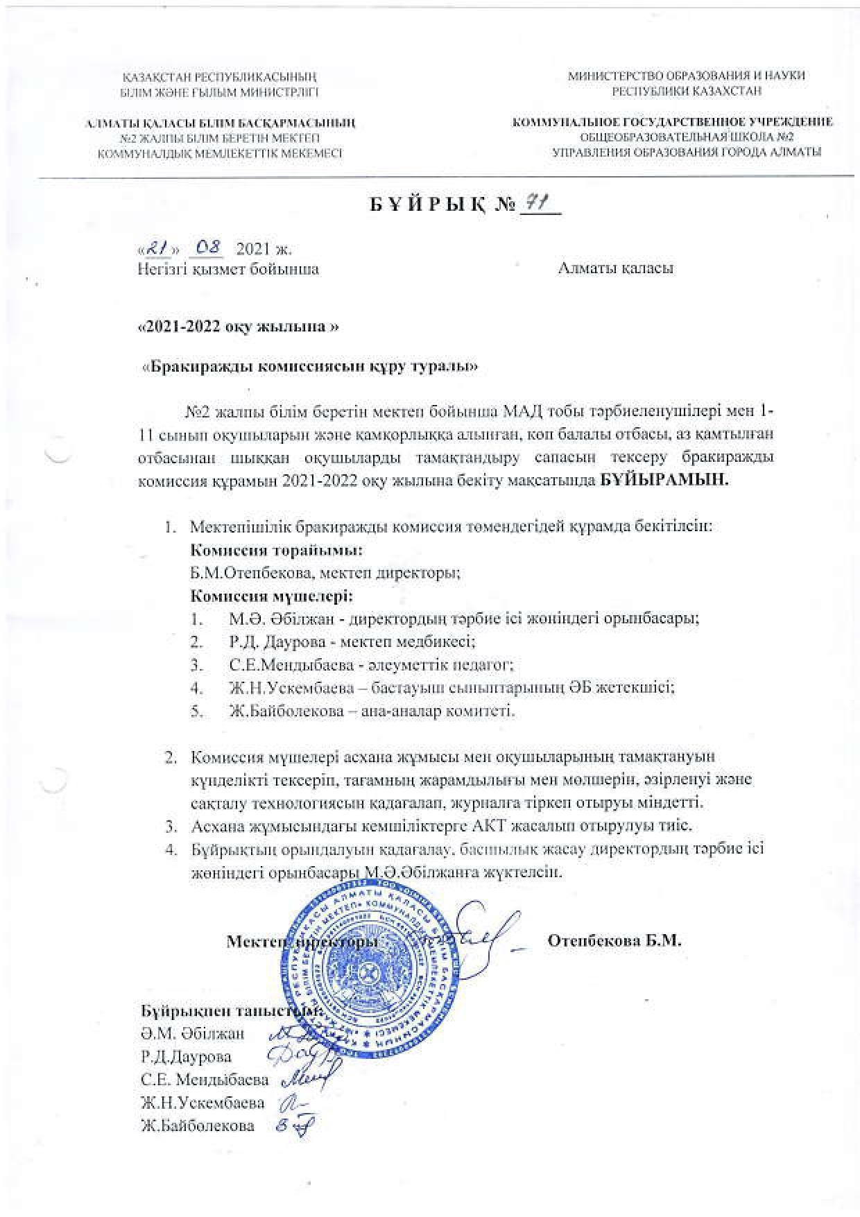 » Брокиражды комиссия құру туралы 2021-22 о.ж.