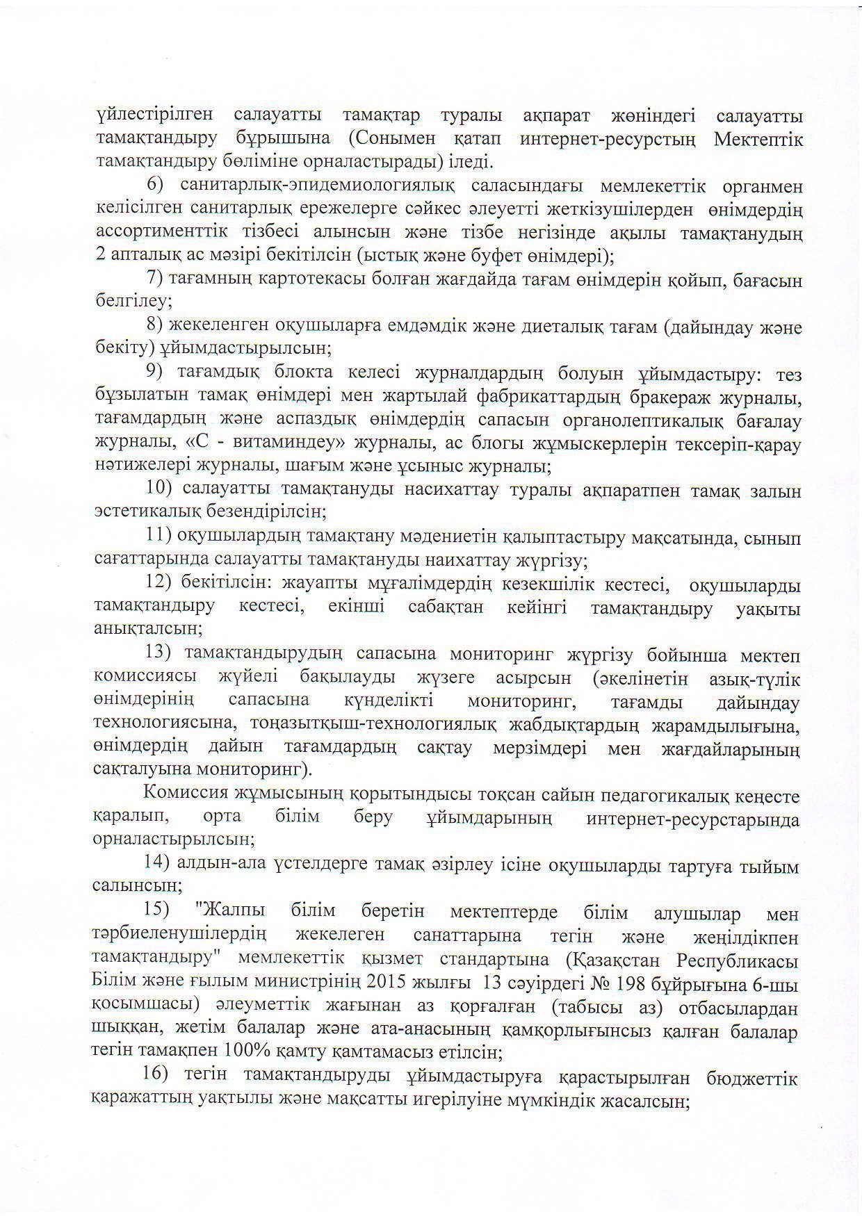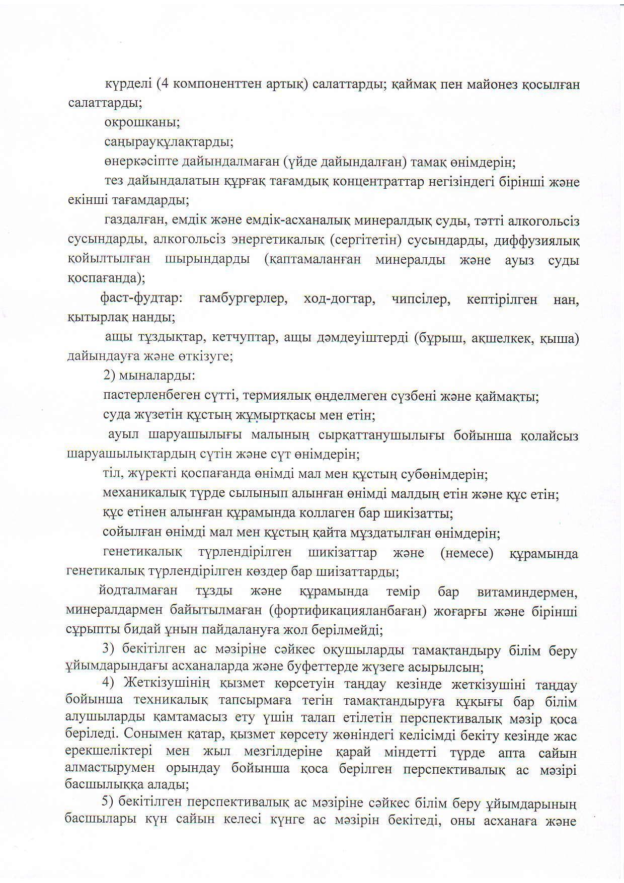 » Сапалы тамақтандыруды ұйымдастыру туралы
